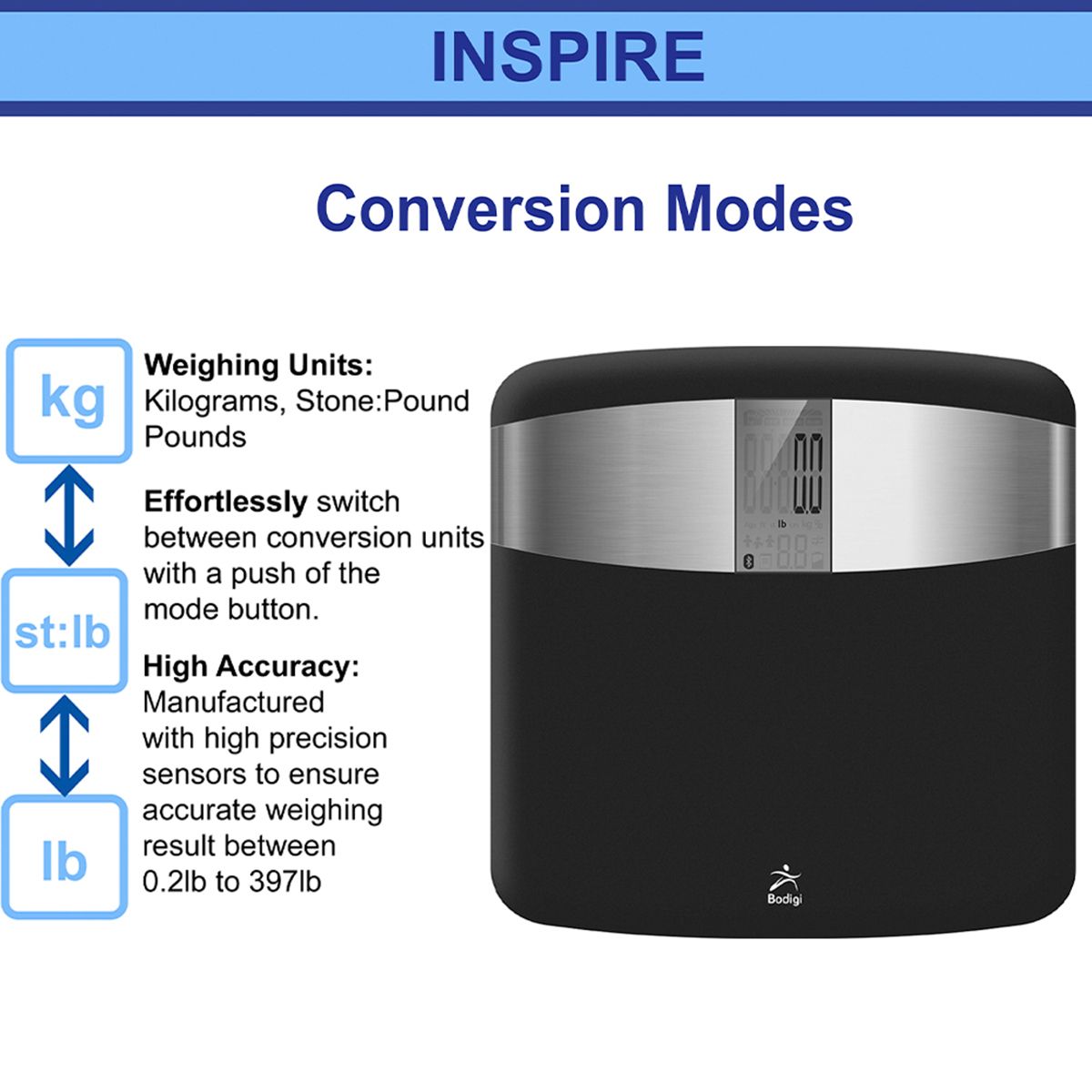 INSPIRE BMI BATHROOM SCALE, 396LB INSPIRE BMI BATHROOM SCALE, 396LB INSPIRE BMI BATHROOM SCALE, 396LB